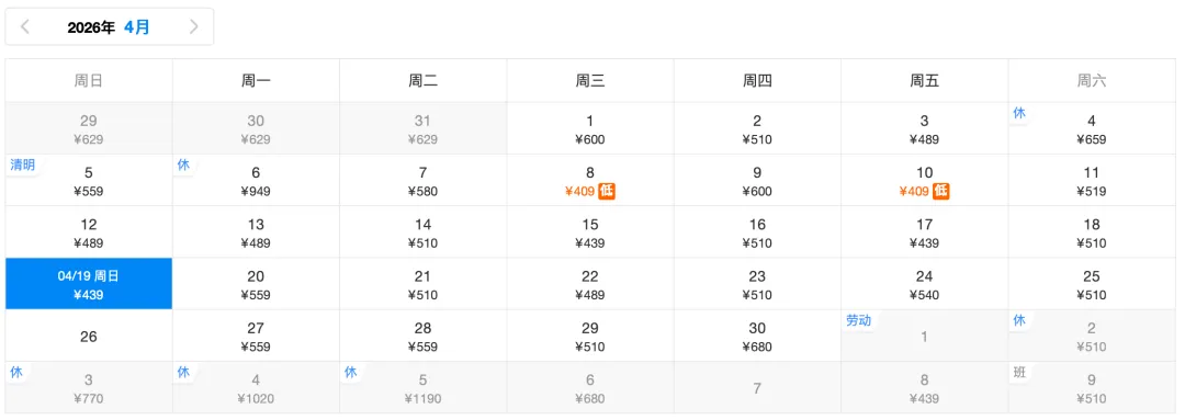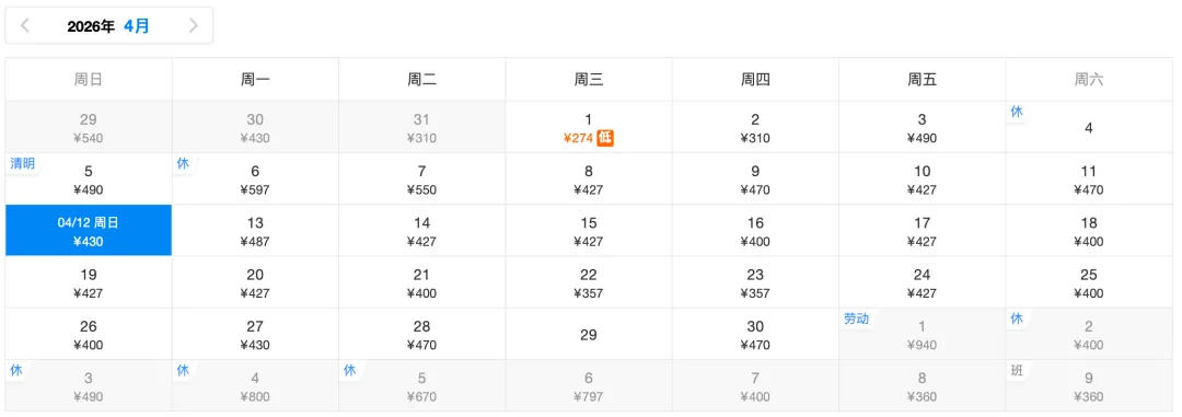 ✈️返程低价430元
