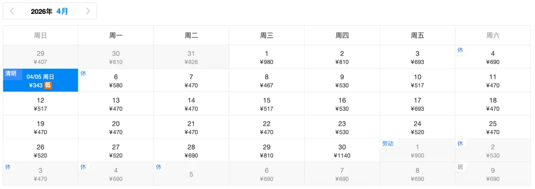 ✈️去程低价343元