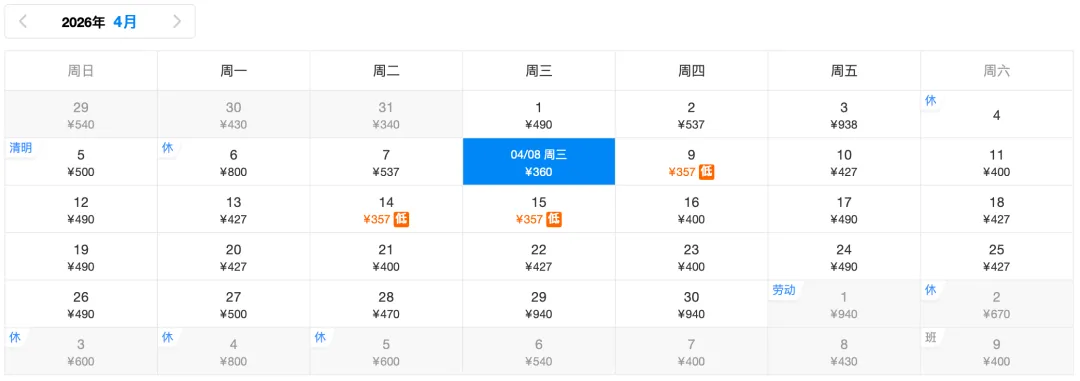 ✈️去程低价360元