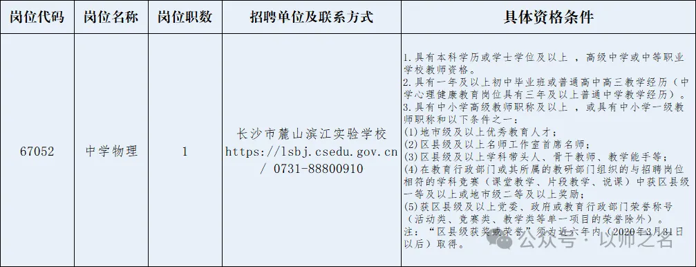 根据《事业单位人事管理条例》等有关规定,经研究决定,长沙市人力资源和社会保障局会同长沙市教育局对其所属29个事业单位开展2026年第二轮教职工公开招聘工作。本次招聘计划为226名,招聘对象为公费师范生、高校毕业研究生、骨干教师、学科竞赛教练和体育教练员。其中,长沙市麓山滨江实验学校本次招聘计划为1名高校毕业研究生(中学英语)、1名骨干教师(中学物理)。编制使用计划经中共长沙市委机构编制委员会办公室批准。现将有关事项公告如下: