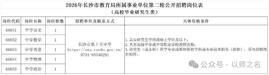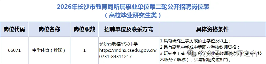 2.《2026年长沙市教育局所属事业单位第二轮公开招聘岗位表(高校毕业研究生类)》