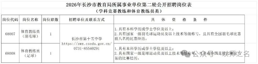 4.《2026年长沙市教育局所属事业单位第二轮公开招聘岗位表(学科竞赛教练和体育教练员类)》