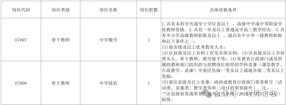5.骨干教师岗位报考人员,具有中小学一级教师职称的,年龄须在40周岁以下(1985年3月31日以后出生);具有中小学高级教师职称及以上的,年龄须在45周岁以下(1980年3月31日以后出生)。