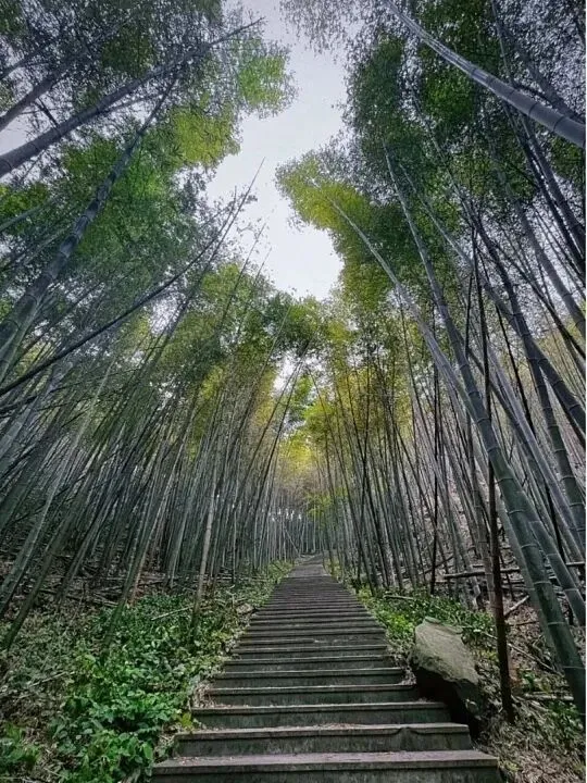 森林覆盖率80%、绿化率98%,溪谷清澈见底,古树新绿交织。沿溪步道人迹罕至,山色葱茏,空气清新宜人。市区自驾约50分钟。