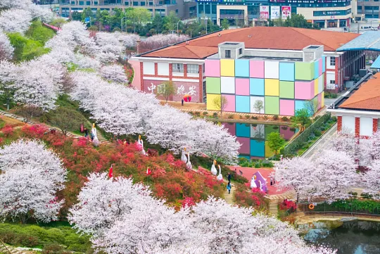 占地200亩,30多个樱花品种,粉樱、白樱数千株。这里拍夜樱超绝,路灯拉长了树影与人影,散发出神秘温柔的气息。活动时间:2026年3月14日-4月15日,免费入园需预约。