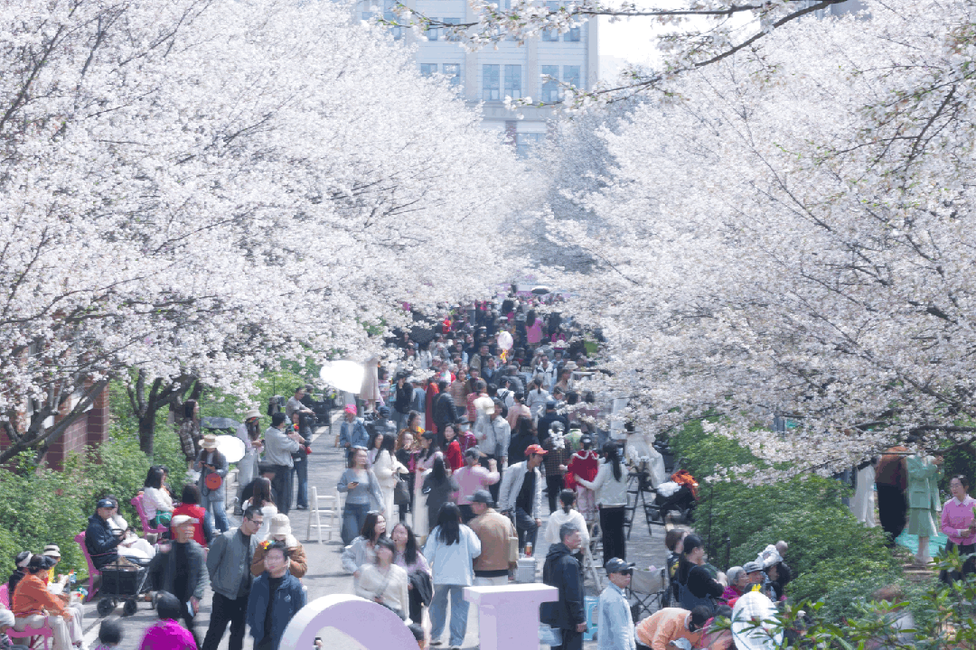 今年的春雨太漫长,樱花开一半败一半,好在清明还有一点阳光,可以偶遇今年最后的樱花季节。名花广场的郁金香已经凋谢,还有部分洋水仙。建议公共交通出行去赏花。