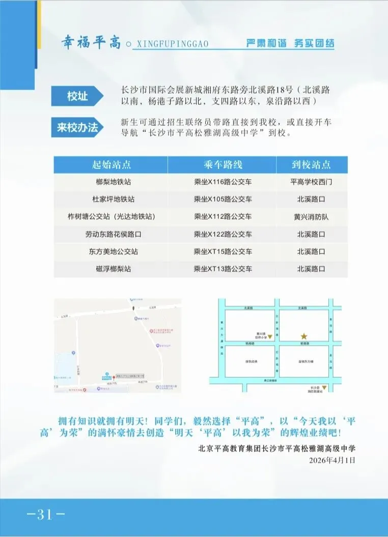 长沙市平高松雅湖高级中学2026年秋季高一招生简章