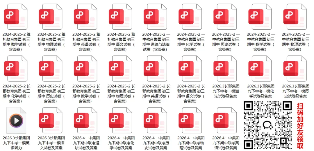 【真题领取】扫码加好友进群可免费领取长沙初三一模+期中联考真题及答案,最新升学政策、招生报名信息等也会在群内发布(已入群家长直接在群内下载)。