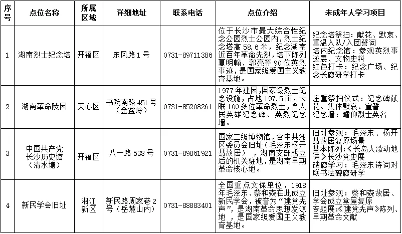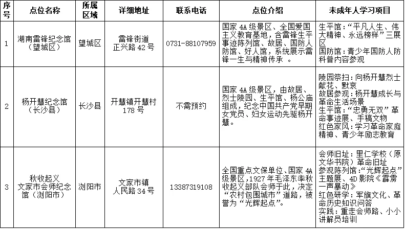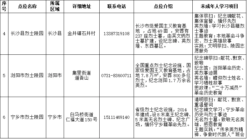 4.以上实践活动点位为综合各场馆信息所得,为部分点位,各地各学校也可组织未成年人就近就便到烈士陵园、革命遗址遗迹和纪念场馆等参与祭扫献花,开展“英烈故事我来讲”红色小讲解员、党史知识公益宣传等传承红色基因活动。