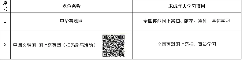 3.线上补充:若受天气或其他条件限制,可引导未成年人使用表格中提供的线上祭扫平台进行云端缅怀。
