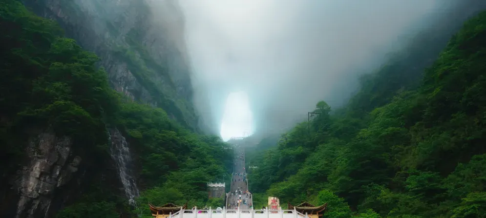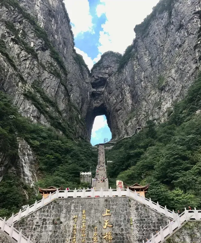早餐后,乘车往张家界(车程约4小时),游览“武陵之魂”湘西神山【天门山】(赠送双程扶梯和玻璃栈道鞋套,根据景区预约情况我社有权调整游览顺序)乘世界最长的高山客运缆车上山:游览天门洞开景区,观五大奇观,【天门索道】:索道线路斜长 7455 米,上、下站水平高差 1279 米,是世界最长的单线循环脱挂抱索器车厢式索道。【玻璃栈道】:这条看着就让人腿软的玻璃栈道给人带来的刺激震撼感。【通天大道】:被称为通天大道的盘山公路共计99弯,“天下第一公路奇观”横空出世,垂直高差达千米左右。【天门洞开】九百九十九级台阶登上天门洞,是罕见的高海拔穿山溶洞。晚餐后入住酒店。 含早中晚 住张家界