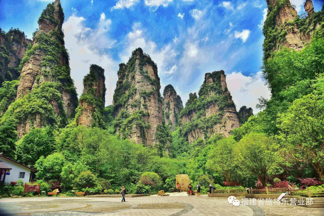 早餐后,乘车赴张家界森林公园景区(含大门票),游览【袁家界】(赠百龙电梯往返),乘电梯直达风光原始自然的袁家界景区,参观《阿凡达》电影中的“哈利路亚山”即“南天一柱”(又名乾坤柱);乘景区环保车前往峰林之王【天子山风景区】点将台、西海石林、谜魂台、贺龙公园、御笔峰、仙女献花等;游毕乘百龙电梯下山;后漫步世界最美的【金鞭溪】:溪水明净,胜似画中游。晚上欣赏魅力湘西或千古情表演(含普座票,不去不退,无优免)。含早中晚 住张家界