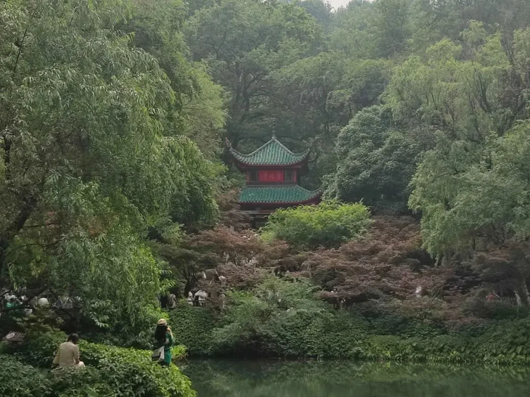 来到湘江西岸,是南岳衡山七十二峰的尾峰——岳麓山。沿主路步行上山,登顶毫不费力,站在云麓峰,湖湘山水与星城繁华便能一并收揽。湘江如一条玉带穿城而过,橘子洲静卧江心,对岸商圈高楼林立,远处梅溪湖艺术中心独特的“芙蓉花瓣”造型若隐若现,微风拂面,令人心旷神怡。行至爱晚亭,虽未红枫漫山,但亭台古朴,飞檐翘角,依旧能体会到杜牧“停车坐爱枫林晚”的诗意。