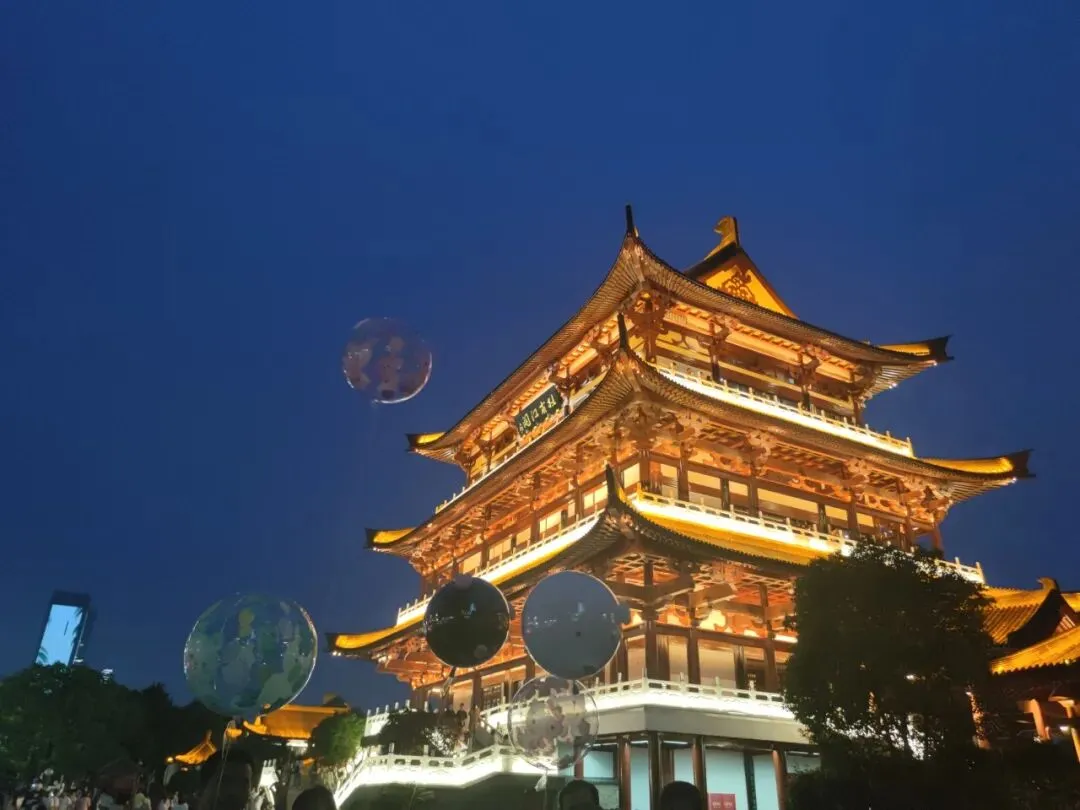 暮色降临,漫步湘江边,晚风轻拂,吹散白日的燥热,岸边的行人或悠闲散步,或静坐赏景,岁月温柔,尽在眼前。夜幕降临,杜甫江阁灯火亮起,与湘江两岸的夜景交相辉映,“正是江南好风景,落花时节又逢君”的千年诗意,在江风里格外动人。