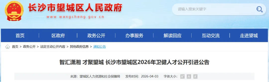 2.报名方式:本次引进采取网上报名,不接受其他形式报名。请报名人员在规定时间内登录望城区政府门户网站(http://www.wangcheng.gov.cn),在首页点击“长沙市望城区2026年卫健人才公开引进报名入口”栏目进入报名系统,选择相应的岗位进行报名(每人限报一个岗位)。青年医师系统报名功能于5月8日17:00准时关闭,学科带头人、骨干医师和基层医师系统报名功能于5月28日17:00准时关闭,关闭后不再补报。