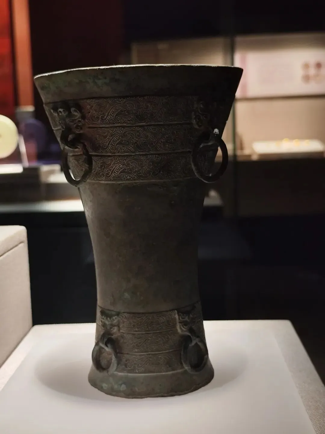 - 造型融合商周青铜觚的经典形制,又创新设计束腰、高圈足结构,在汉代铜器中极为罕见。