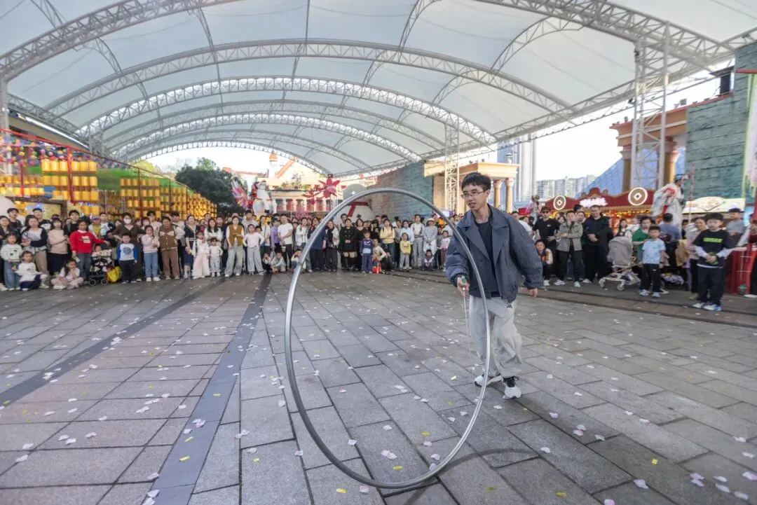 打超大陀螺、滚超大铁环