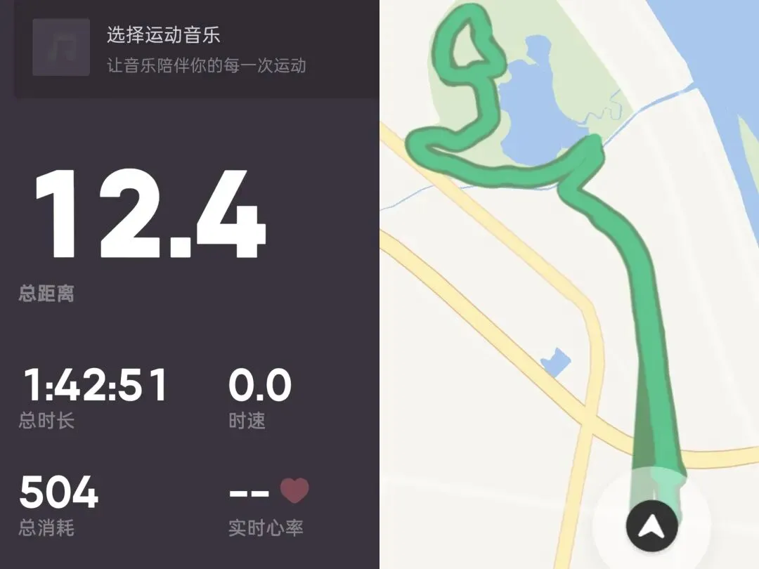 12.4km,1小时42分钟,504千卡消耗,和儿子的一场春日慢骑,就这样圆满结束了。