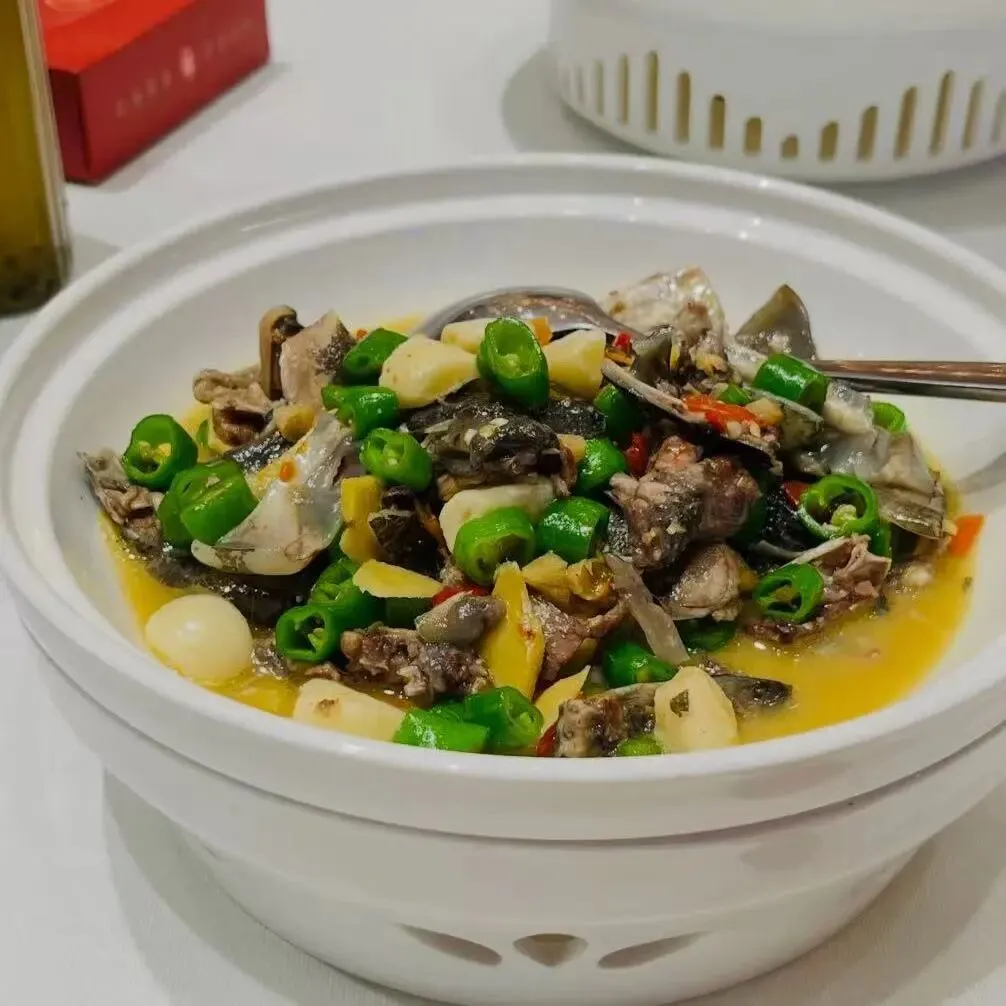 炒菜:农家小炒蒿笋片、小炒卤猪脸、浸辣椒炒肉、爆炒牛蛙、青椒老姜炒鸡、大蒜炒腊肉、大蒜辣椒炒腊牛肉、紫苏鲜田螺、青椒炒油渣、酸萝卜炒鸡杂、香干炒肉、西红柿炒蛋、葱煎蛋