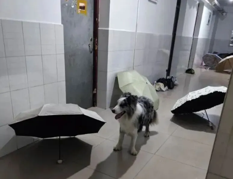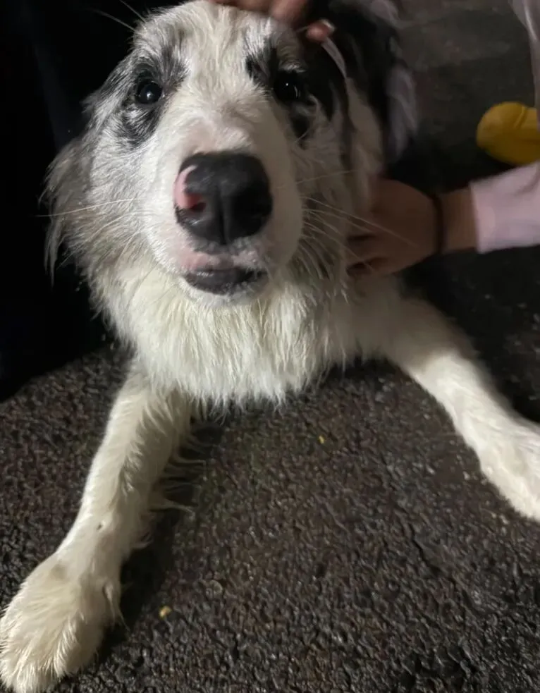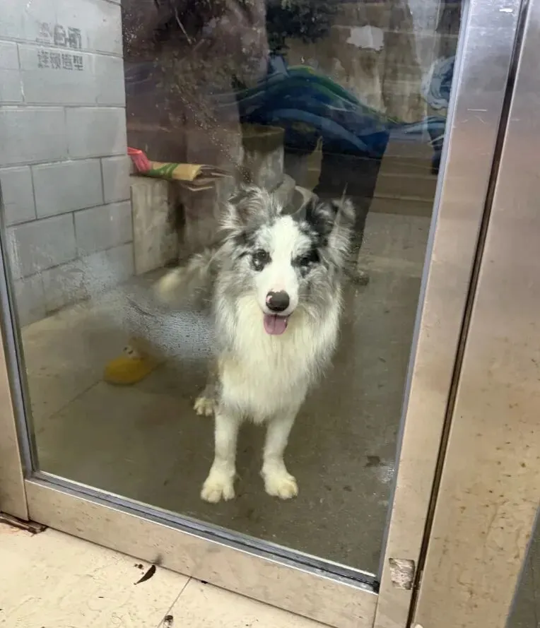 长沙连续降雨,天气湿冷。一只看起来不足一岁的陨石边牧,在深夜悄悄出现在女生宿舍区域,被热心同学发现。