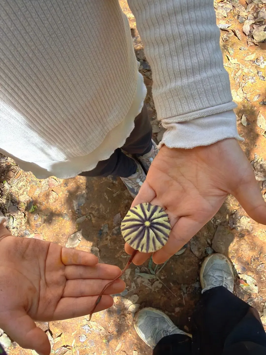 下山这段路,孩子发现了神奇的小蘑菇,采了一朵,心心念念要带回去和朋友分享,结果途中搞丢了回家想起来还哭闹了一番。