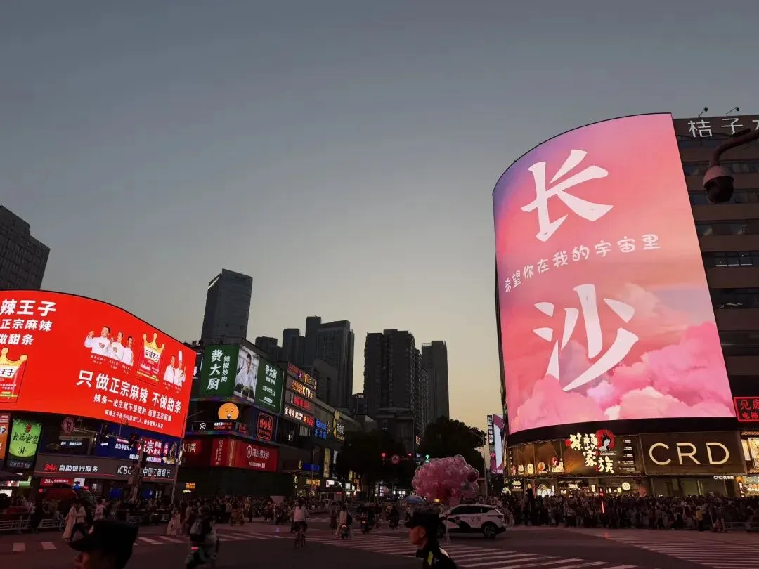 传统的中式建筑、网红大屏、川流不息的人群,交织出长沙独有的“烟火气+潮流感”,也许,这也是长沙常年稳居全国热门旅游城市的原因。