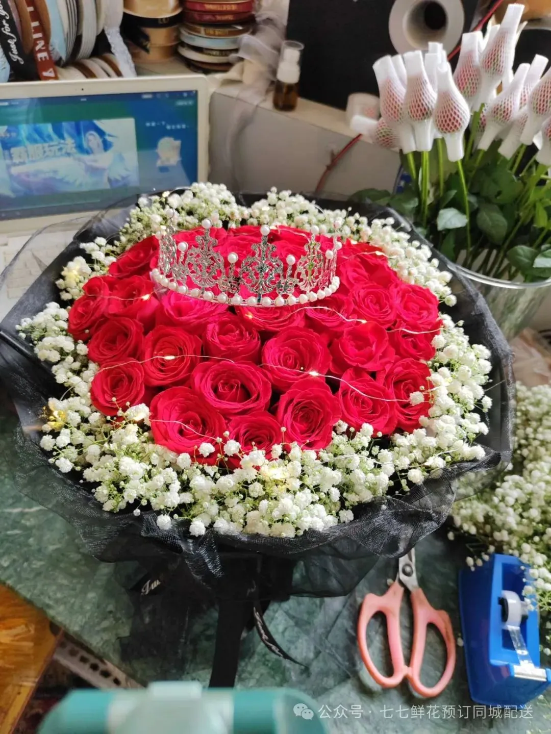 长沙市浏阳市鲜花店微信:1092231771520情人节同城送花/开业花礼财富如潮而来清新高级