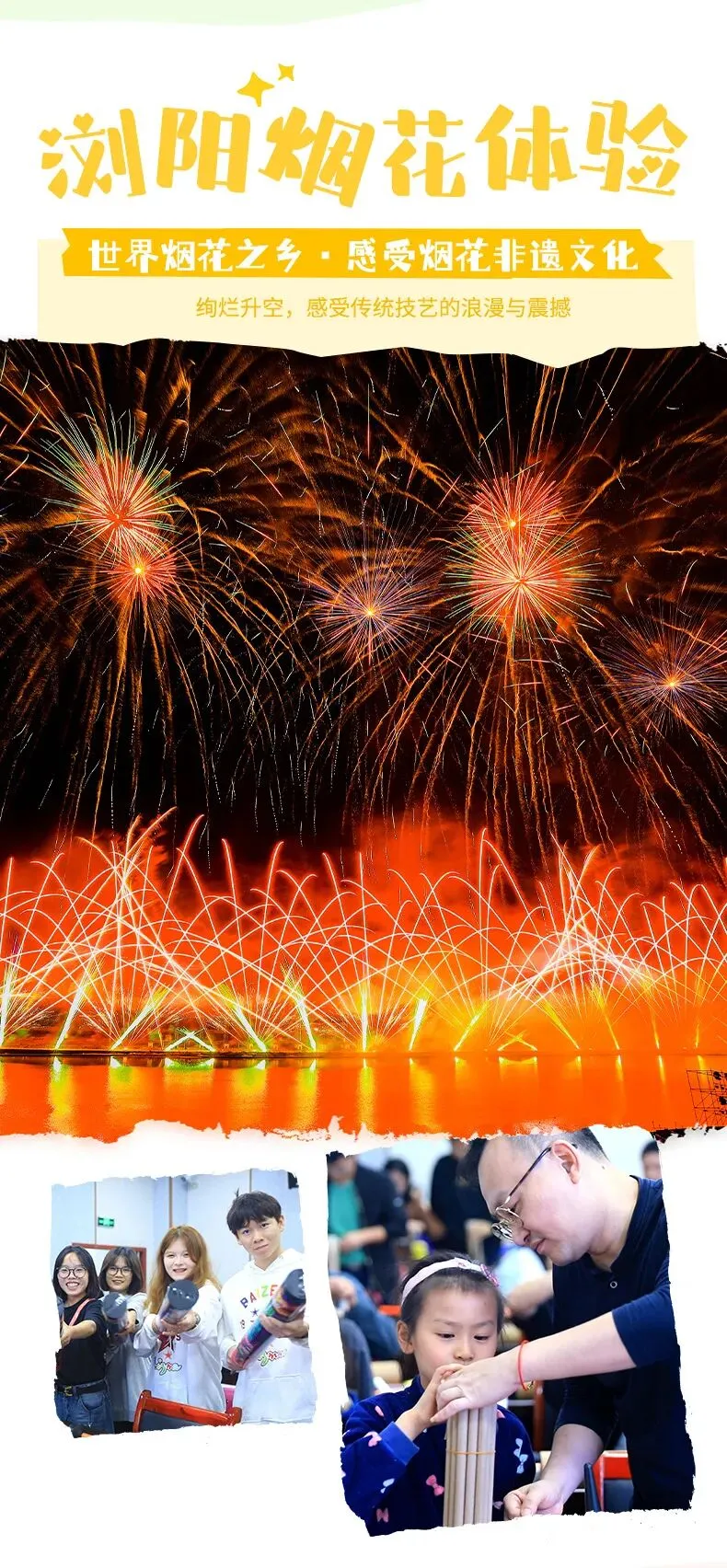 稍作休息后,前往浏阳专业花炮制作基地,由烟花行业专业老师全程授课,开展趣味烟花制作小课程:亲手体验国风礼花弹制作+网红加特林制作,专业讲解烟花的制作流程、工艺原理与安全燃放知识,孩子亲手造烟花,感受传统工艺与现代烟火的碰撞,完成作品可带走留作纪念