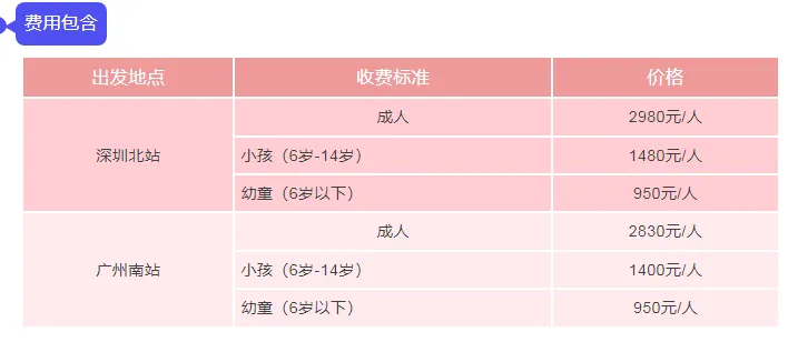 1、成人:包含门票,行程中所包含的一切费用,赠送项目因天气原因或自愿不参加的均不退费