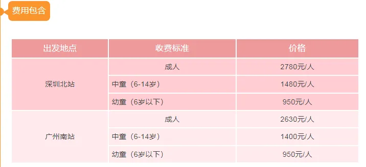 1、成人:包含门票,行程中所包含的一切费用,赠送项目因天气原因或自愿不参加的均不退费