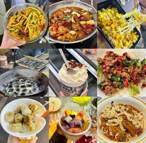 不足500 米长的夜市街,美食荟萃,无论什么日子,都人潮汹涌。每当夜幕降临,远道而来的人们仿佛约定好 了,纷纷涌向一眼望不到头的摊档,将整条街塞得满满当当,享受逛吃逛吃的痛快,以及不吃逛逛都快乐的氛围。 夜复一夜,乐此不疲。离广电中心近,也是明星美食打卡地;说不定还能偶遇到明星哦 þ这里美食种类齐全,店面也相对集中,不管是苍蝇馆子,还是天黑才出没的夜宵摊,都有一款你喜欢的味道, 清凉的夏天穿着人字拖和三五好友边吃边吐槽,简直就是理想夏日。 þ美食店铺推荐:李记飞饼、川湘麻辣烫、辣妹子麻辣烫、宁波水塔糕、梅花小蛋糕、蛋包糯米饭、张记炒意大利面、美式炸排条、狼牙土豆炒鱿鱼、上海香酥鸡、这椰可以。