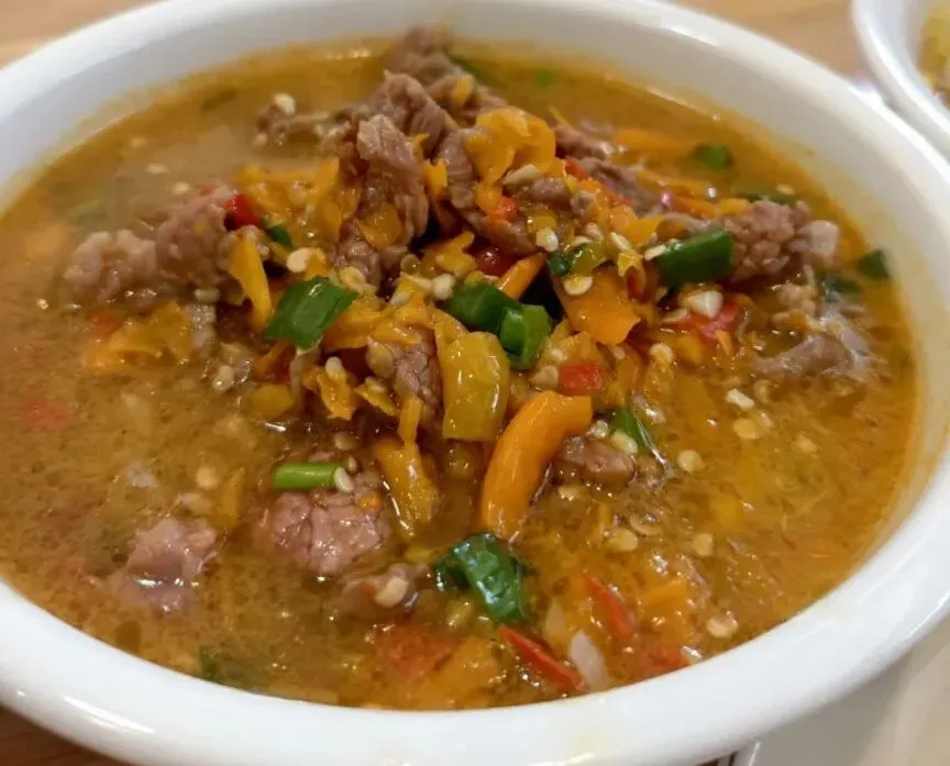 生汆牛肉,牛肉切得很薄,汆得很嫩,口感蛮好的,看着很多辣椒,但是个人感觉也不是特别辣那种,挺美味下饭的。
