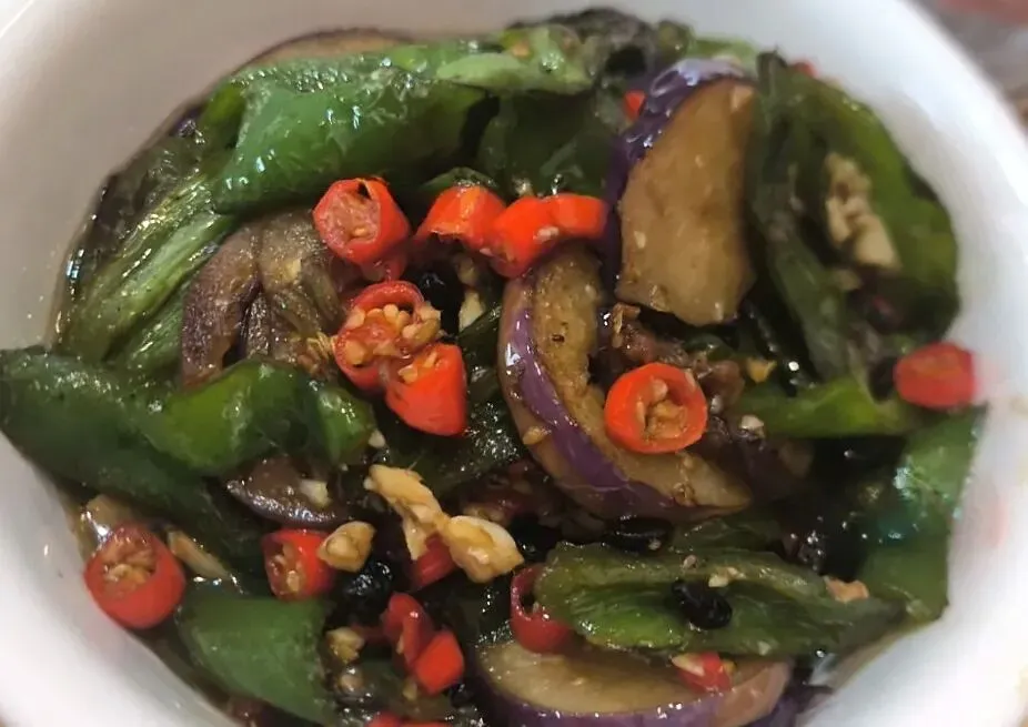 青辣椒炒茄子,这个都很入味,青椒和茄子都吃光,哈哈。