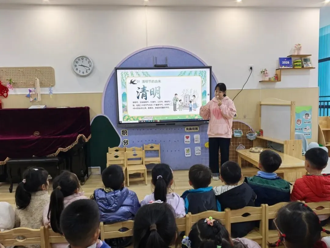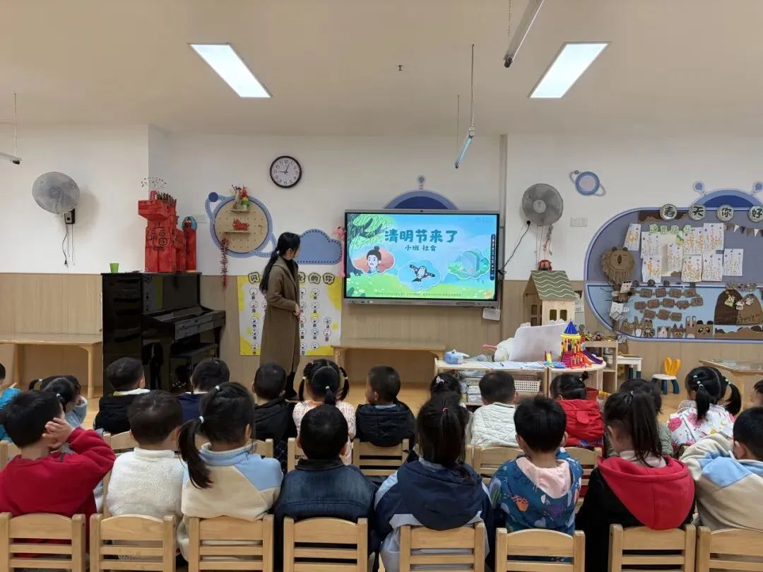 在集体教学活动中,老师们通过生动形象的图片、动画和故事,向孩子们讲解了清明节的起源与习俗。孩子们在轻松愉快的氛围中,对“生命”与“感恩”有了懵懂而温暖的初印象。