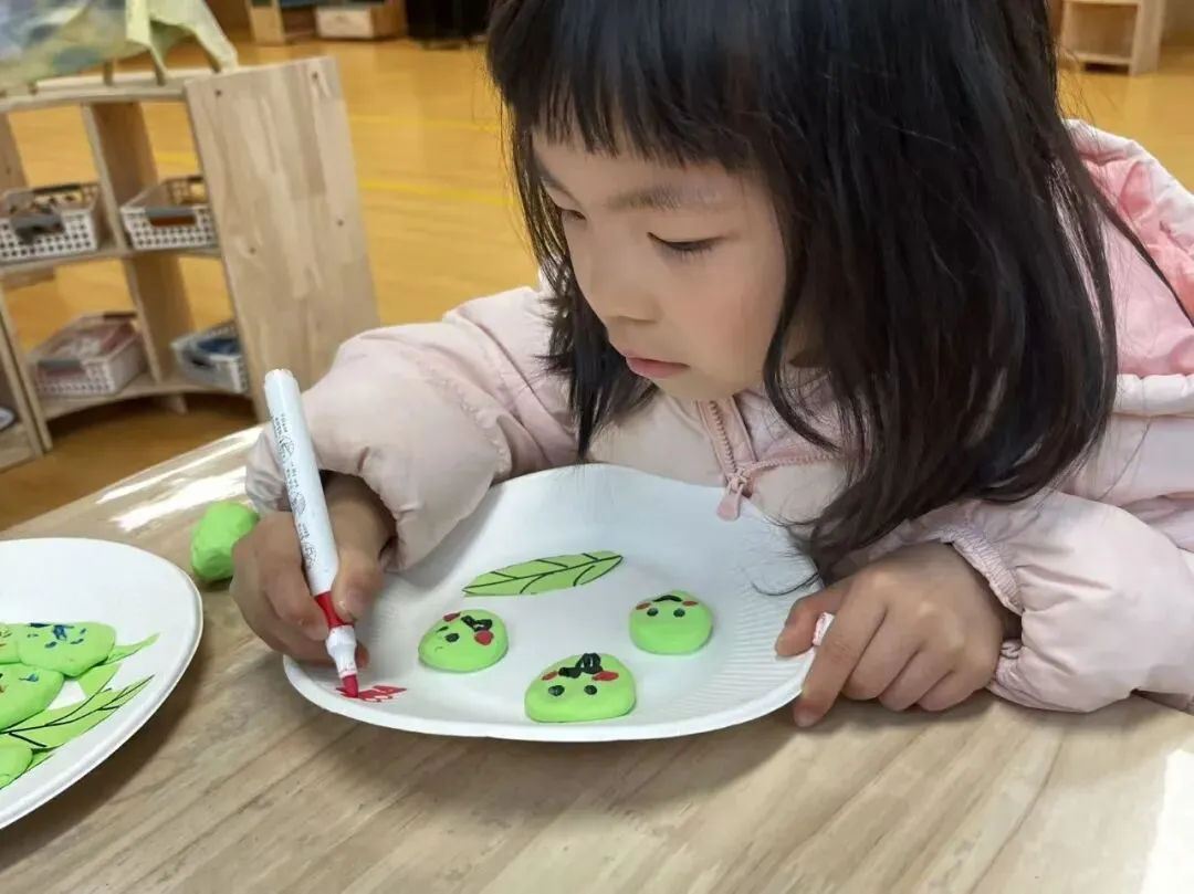 虽然不能真的品尝,但看着自己亲手制作的圆滚滚、绿油油的“青团”,孩子们的脸上洋溢着满满的成就感,仿佛已经闻到了春天的味道。
