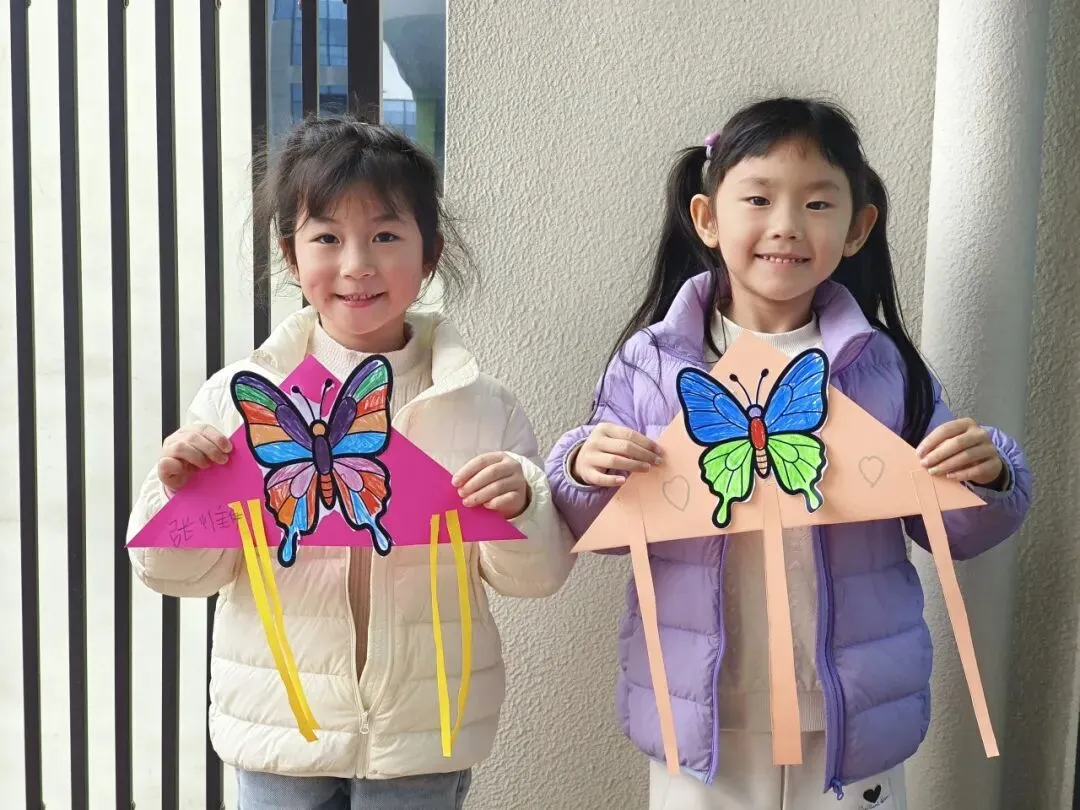 大班孩子们拿起画笔,认真绘制属于自己的风筝。一只只独一无二的彩绘纸鸢,承载着孩子们对春天的热爱和对未来的美好憧憬。