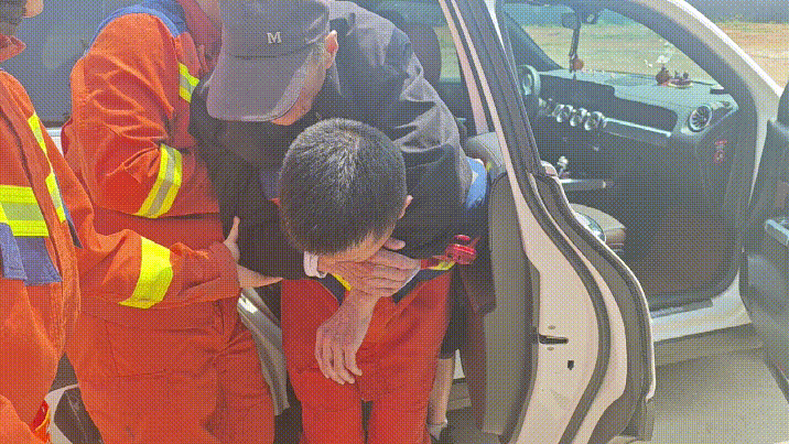 大爷,山路太窄,担架过不去,我们背您下山,您抓好我们的肩膀,别害怕。