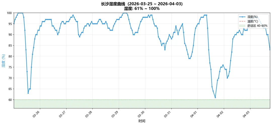 梅雨季节呢?今年连续下雨那阵,室外湿度95%,我家湿度表显示多少?52%。地板是干的,墙壁是干的,被子攥一把都是松软的。衣柜里没有霉味,不用除湿机,湿度就稳稳地控制在人舒服的区间。