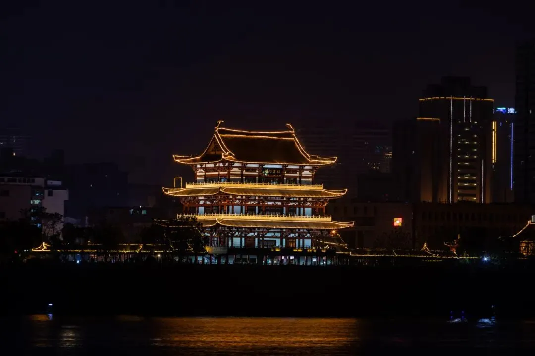 杜甫江阁,近观橘洲风景,远眺麓山烟云,饱览长沙山水洲城的美丽姿容,连同湘江风光带被湖南旅游协会评为新潇湘十景之一,是各地游人争相登临的星城名胜。