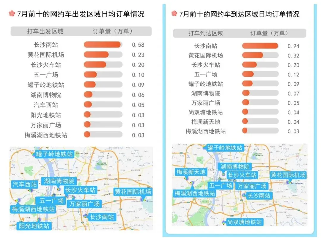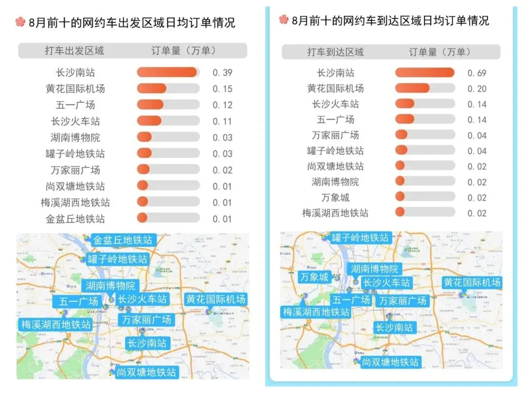 长沙市2025年下半年出租车订单数据,看哪个区域网约车订单最多!