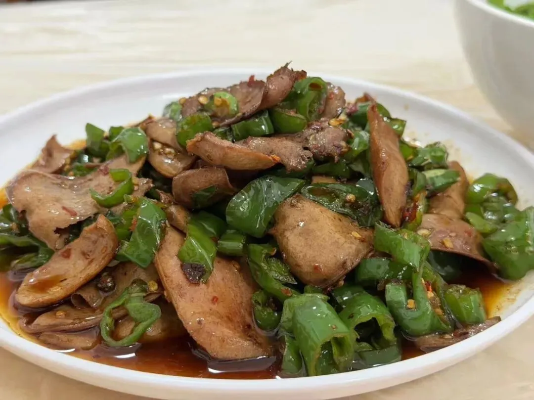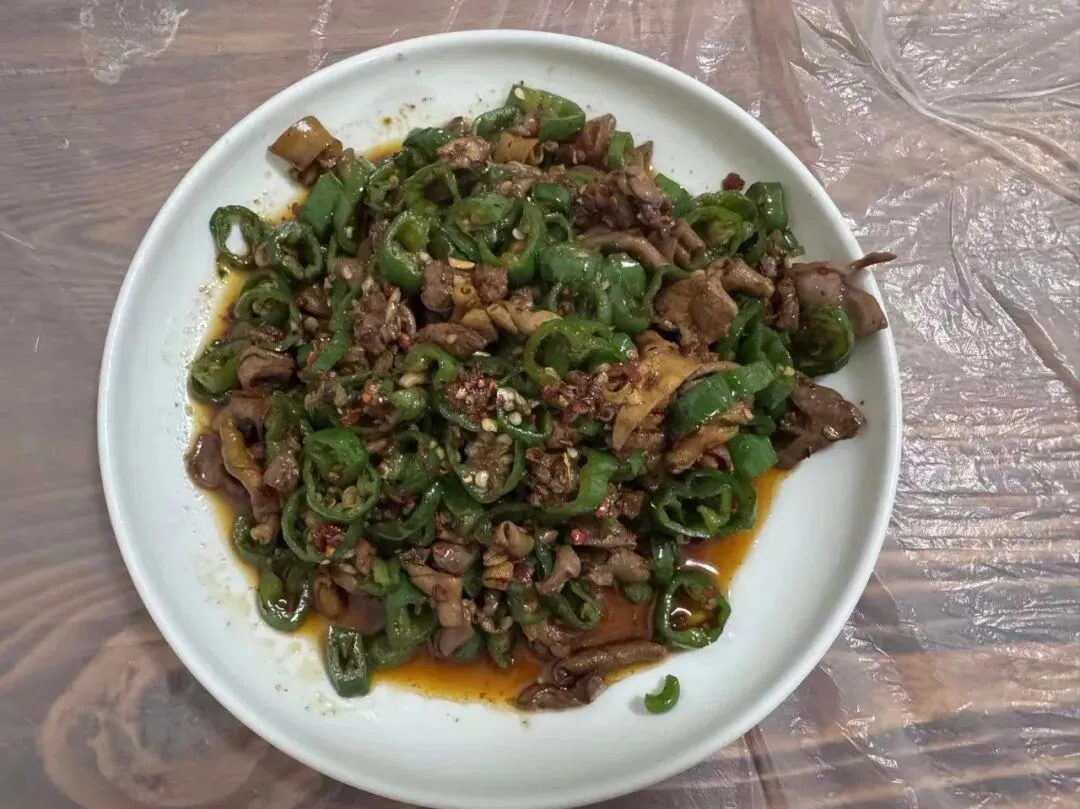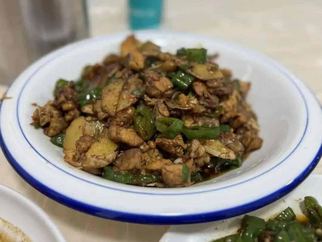就拿他们家的青椒炒鸡来说,这道算是招牌了,也是我每次去都觉得点得蛮稳的一道。它不是那种鸡肉切得规规整整、口感偏嫩滑的做法,而是更强调爆炒之后的香、辣、入味。鸡肉本身会更有嚼劲一点,青椒、姜蒜这些味道也都裹得很实,吃起来就是很直接、很下饭。你单看它,可能不会觉得这是那种现在很容易被包装成“精致招牌菜”的东西,但真上桌以后,筷子是不会闲着的。