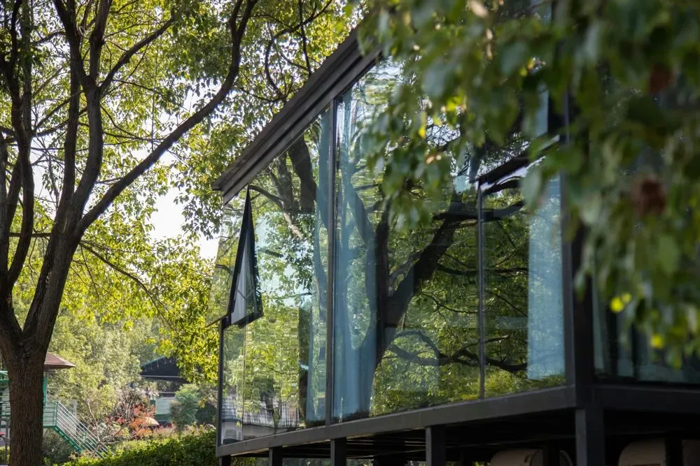 别墅位于光明大观园景区松鼠谷内,房间是全实木家具,旁边就是小树林,朴素又自然。