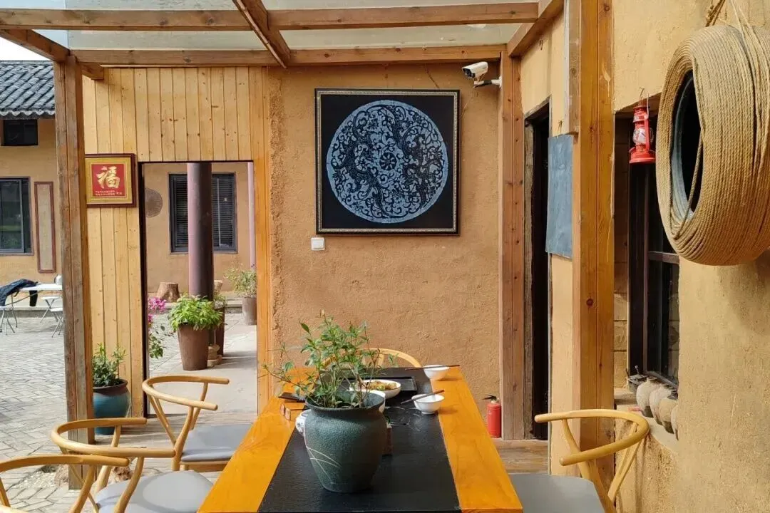 莲遇民宿背靠青山,面对桐木河,院落里的土屋、水塘、廊桥保留着原乡肌理。坐在廊桥畔,听河水潺潺,仿佛时间都慢了下来。