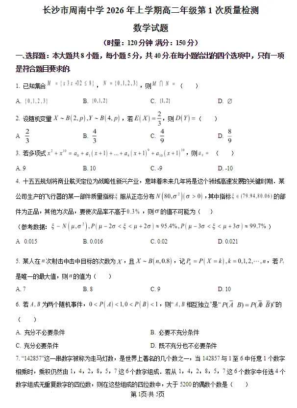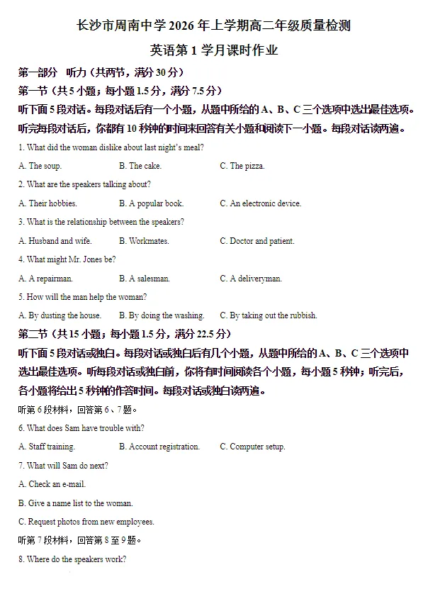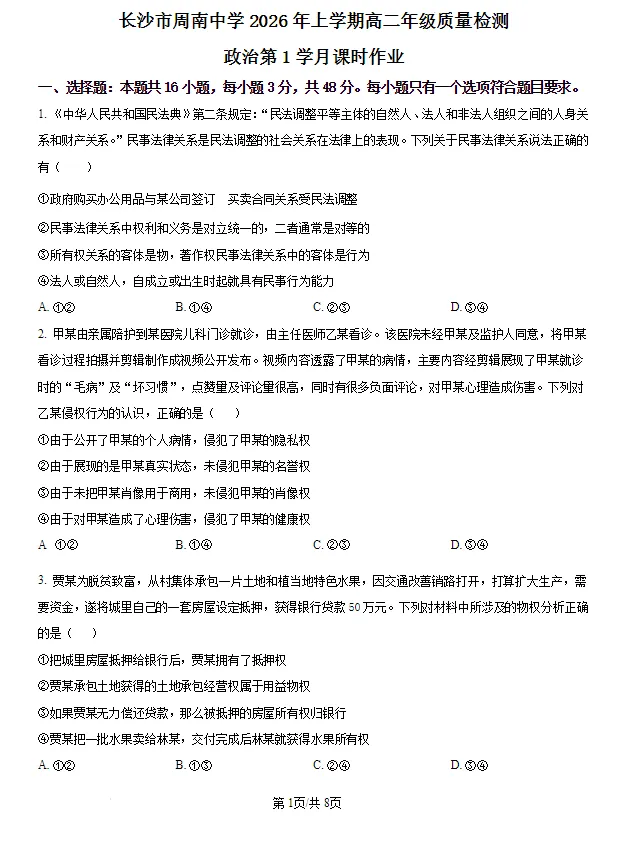 1.广东省东莞市东华高级中学、东华松山湖高级中学2025-2026学年高二上学期学习效率检测(一)数学试卷含答案 2.湖南省长沙市长郡中学2025-2026学年高二上学期11月期中考试数学试卷含答案 3.湖南省长沙市长郡中学2025-2026学年高二上学期11月期中考试语文试卷含答案 4.湖南省长沙市长郡中学2025-2026学年高二上学期11月期中考试物理试卷含答案 5.湖南省长沙市长郡中学2025-2026学年高二上学期11月期中考试化学试卷含答案 6.湖南省长沙市长郡中学2025-2026学年高二上学期11月期中考试历史试卷含答案 7.湖南省长沙市长郡中学2025-2026学年高二上学期11月期中考试思想政治试卷含答案 8.湖南省长沙市长郡中学2025-2026学年高二上学期11月期中考试生物试卷含答案 9.湖南省长沙市长郡中学2025-2026学年高二上学期11月期中考试地理试卷含答案 10.湖南省长沙市望城区第一中学2025-2026学年高二上学期期中考试语文试题(含答案) 11.湖南省长沙市望城区第一中学2025-2026学年高二上学期期中考试数学试卷(原卷版)(解析版) 12.湖南省长沙市望城区第一中学2025-2026学年高二上学期期中考试历史/地理试卷(含答案) 13.湖南炎德英才名校联合体2025年秋季高二上第三次联考(期中)语文试卷含答案 14.湖南炎德英才名校联合体2025年秋季高二上第三次联考(期中)数学试卷含答案 15.湖南炎德英才名校联合体2025年秋季高二上第三次联考(期中)英语试卷含答案 16.湖南炎德英才名校联合体2025年秋季高二上第三次联考(期中)物理试卷含答案 17.湖南炎德英才名校联合体2025年秋季高二上第三次联考(期中)化学试卷含答案 18.湖南炎德英才名校联合体2025年秋季高二上第三次联考(期中)生物试卷含答案 19.湖南炎德英才名校联合体2025年秋季高二上第三次联考(期中)地理试卷含答案 20.湖南炎德英才名校联合体2025年秋季高二上第三次联考(期中)历史试卷含答案 21.湖南炎德英才名校联合体2025年秋季高二上第三次联考(期中)政治试卷含答案 22.湖南省A佳教育联盟三新教育联考2025-2026学年高二上学期期中联考语文试题及解析 23.湖南省A佳教育联盟三新教育联考2025-2026学年高二上学期期中联考数学试题及解析 24.湖南省A佳教育联盟三新教育联考2025-2026学年高二上学期期中联考英语试题及解析 25.湖南省A佳教育联盟三新教育联考2025-2026学年高二上学期期中联考历史/政治试题及解析 26.湖南省A佳教育联盟三新教育联考2025-2026学年高二上学期期中联考地理试题及解析 27.湖南省A佳教育联盟三新教育联考2025-2026学年高二上学期期中联考物理试题及解析 28.湖南省A佳教育联盟三新教育联考2025-2026学年高二上学期期中联考化学试题及解析 29.湖南省A佳教育联盟三新教育联考2025-2026学年高二上学期期中联考生物试题及解析 30.湖南长沙市一中2023-2024高二上学期12月第三次月考化学试卷及答案 31.湖南省长沙市明德中学等校24-25学年 高二(上)12月联考数学试卷含答案 32.湖南省金太阳联考2024-2025学年12月高二(上)联考数学试卷及答案 33.湖南省天壹名校联盟2024-2025学年上学期高二12月联考数学及答案 34.湖南省天壹名校联盟2024-2025学年上学期高二12月联考思想政治及答案 35.湖南省天壹名校联盟2024-2025学年上学期高二12月联考语文及答案 36.湖南省长郡十八校2024-2025学年高二上学期12月炎德英才联考语文试卷含答案 37.湖南省长郡十八校2024-2025学年高二上学期12月炎德英才联考数学试卷A卷及答案 38.湖南省长郡十八校2024-2025学年高二上学期12月炎德英才联考英语试卷(带听力)含答案 39.湖南省长郡十八校2024-2025学年高二上学期12月炎德英才联考物理A试卷含答案 40.湖南省长郡十八校2024-2025学年高二上学期12月炎德英才联考化学试卷含答案 41.湖南省长郡十八校2024-2025学年高二上学期12月炎德英才联考生物试卷含答案 42.湖南省长郡十八校2024-2025学年高二上学期12月炎德英才联考地理试卷含答案 43.湖南省长郡十八校2024-2025学年高二上学期12月炎德英才联考历史试卷含答案 44.湖南省长郡二十校2024-2025学年高二上学期12月湖南新高考教学教研联盟联考政治及答案 45.湖南省新高考教学教研联盟2026届高二年级12月联考(长郡二十校联盟)语文试卷及答案 46.湖南省新高考教学教研联盟2026届高二年级12月联考(长郡二十校联盟)思想政治试卷及答案 47.湖南省新高考教学教研联盟2026届高二年级12月联考(长郡二十校联盟)化学试卷及答案 48.湖南省新高考教学教研联盟2026届高二年级12月联考(长郡二十校联盟)生物试卷及答案 49.湖南省新高考教学教研联盟2026届高二年级12月联考(长郡二十校联盟)地理试卷及答案 50.湖南省新高考教学教研联盟2026届高二年级12月联考(长郡二十校联盟)英语试卷及答案(含听力) 51.湖南省新高考教学教研联盟2026届高二年级12月联考(长郡二十校联盟)物理试卷及答案 52.湖南省新高考教学教研联盟2026届高二年级12月联考(长郡二十校联盟)历史试卷及答案 53.【数学试卷及答案】湖南省新高考教学教研联盟2026届高二年级12月联考(长郡二十校联盟) 54.湖南长沙一中2025-2026学年高二上学期12月月考化学试题及答案 55.湖南省长沙市雅礼中学2025-2026学年高二上学期12月月考英语试题及答案 56.湖南省长沙市雅礼中学2025-2026学年高二上学期12月月考化学试题及答案 57.湖南天壹名校联盟2025年下学期高二12月联考化学试题及