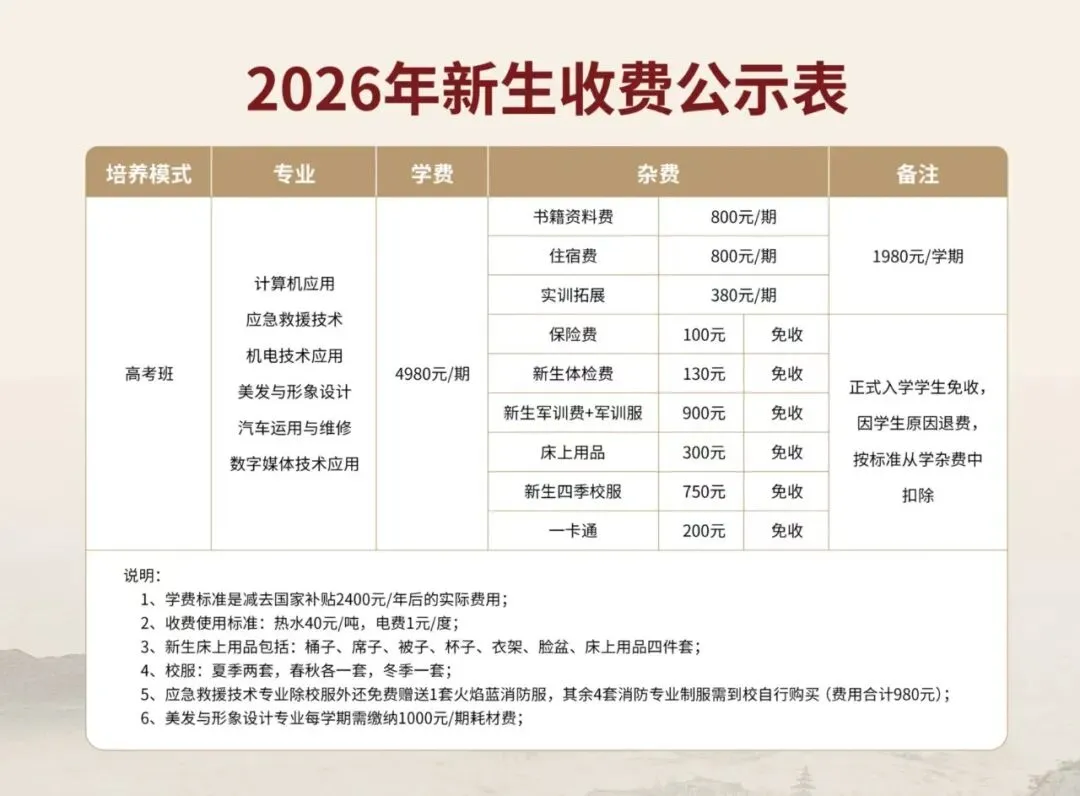 长沙市益立中等职业技术学校2026年招生简章收费标准
