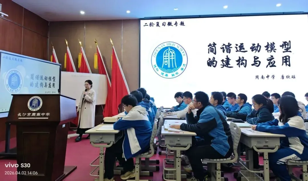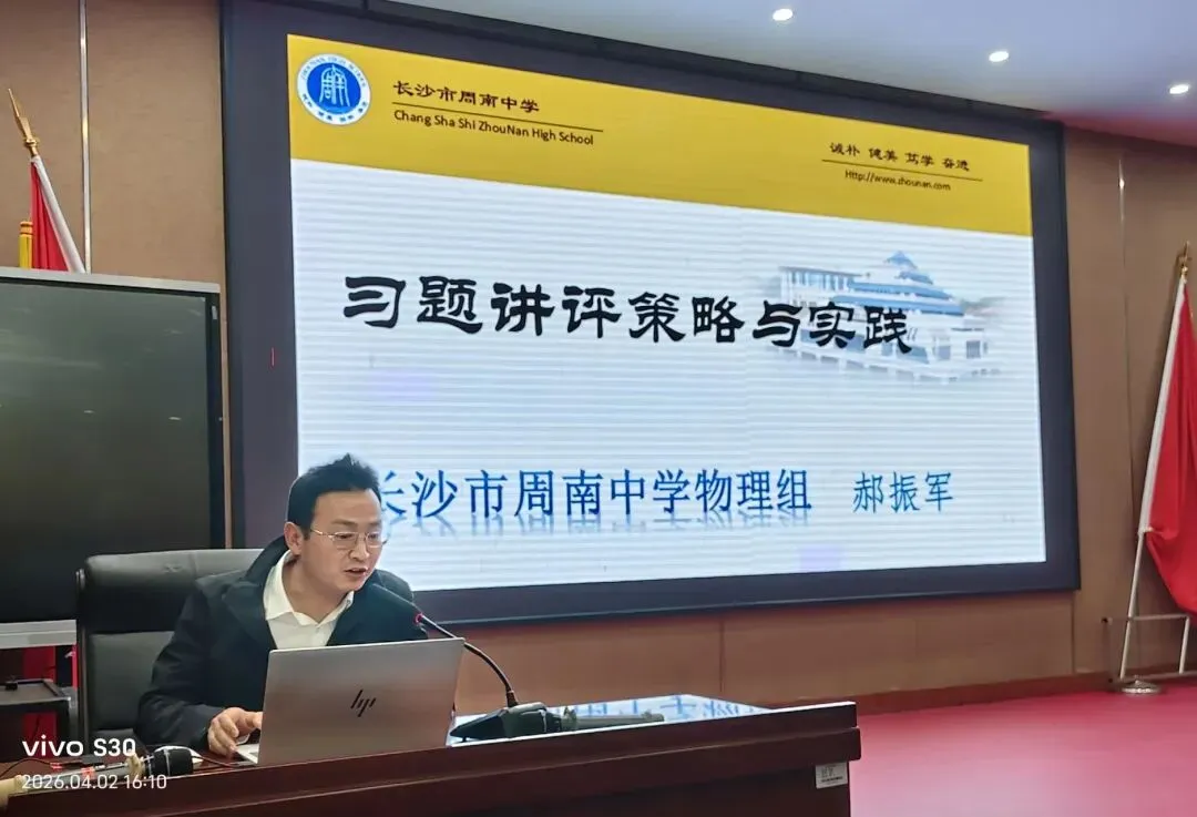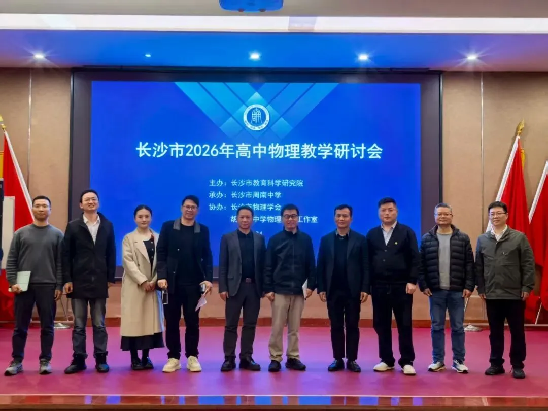 为深化高中物理教学改革,优化高考备考策略,提升物理教学质量,2026年4月2日,由长沙市教育科学研究院主办、长沙市周南中学承办、长沙市物理学会与胡雁军中学物理名师工作室协办的2026年长沙市高中物理教学研讨会顺利举行,全市物理学科教育同仁齐聚一堂,共研教学之道,共探备考之策。