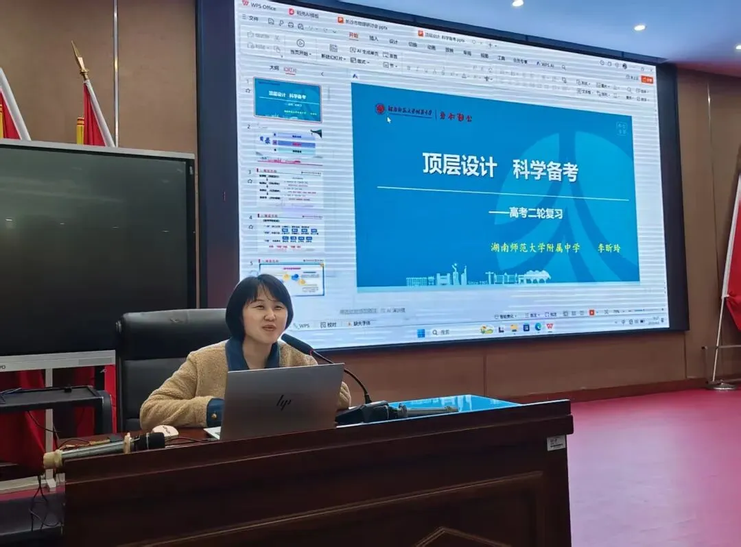 湖南师范大学附属中学教师李昕玲围绕《二轮复习顶层设计与备考策略》,结合师大附中优秀的教研经验为高考二轮复习规划提供专业指导。各校老师的讲座紧扣教学实际,兼具理论高度与实践深度,让在场教师受益匪浅。
