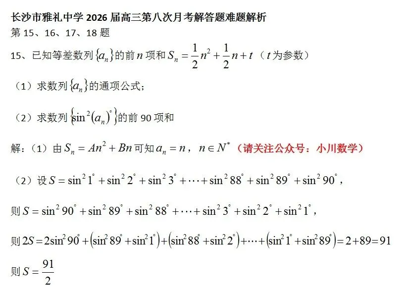 长沙市雅礼中学2026届高三第八次月考选填题难题解析