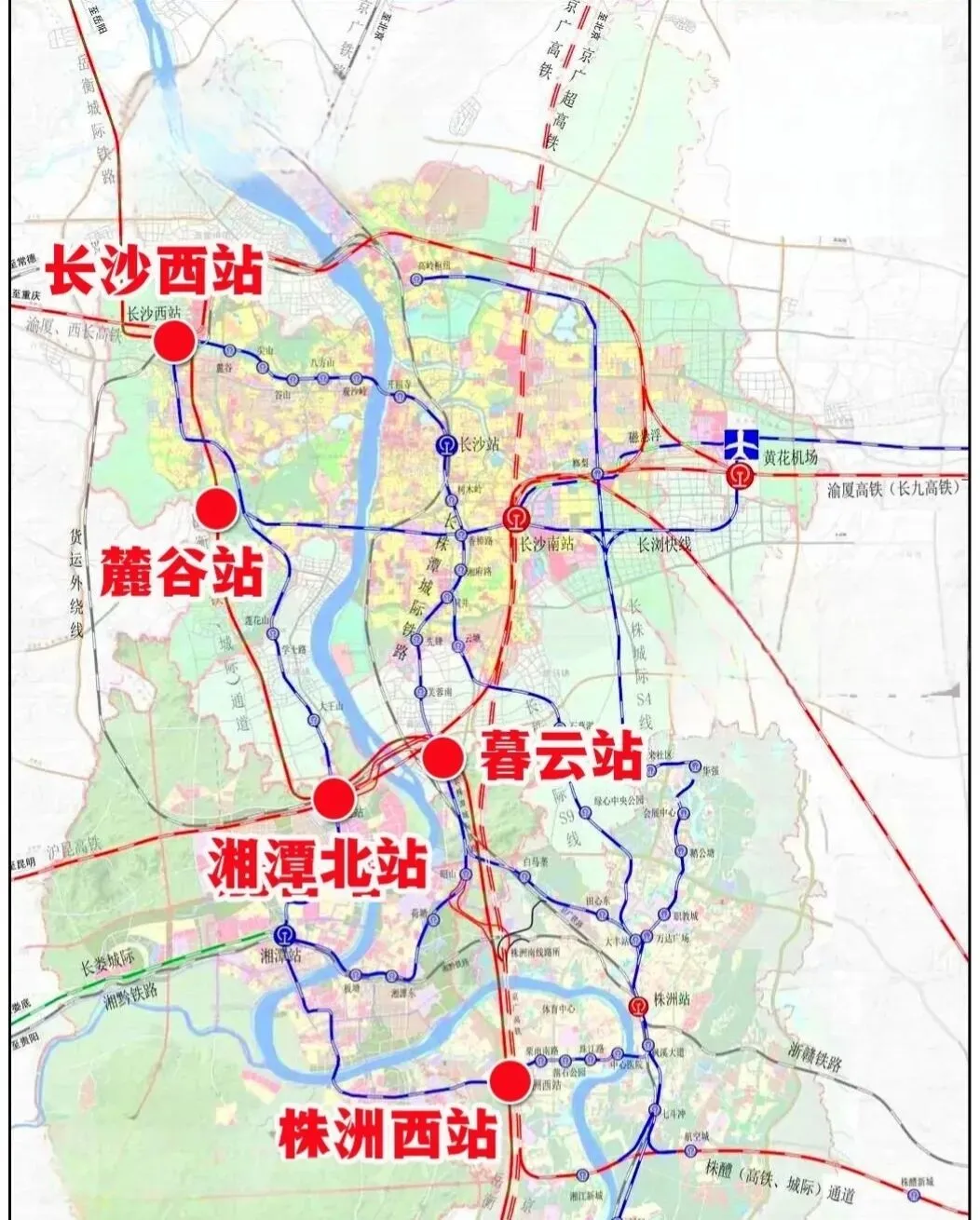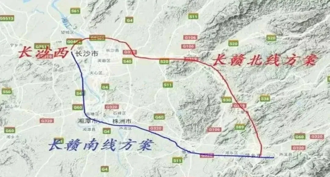 而长赣高铁,在所有人眼里,都是株洲找回枢纽地位、长株潭三市实现枢纽均衡的最好机会。大家心里的美好设想,完全合情合理:长赣高铁走南线接入株洲西,株洲西直接变成京广高铁 + 厦渝通道的十字交汇枢纽,既能承接长沙南分流的南下客流,又能串联湘潭北、长沙西,长株潭三市各有一个国家级枢纽,完美契合 “长株潭一体化” 的口号,怎么看都是一举多得的好事。