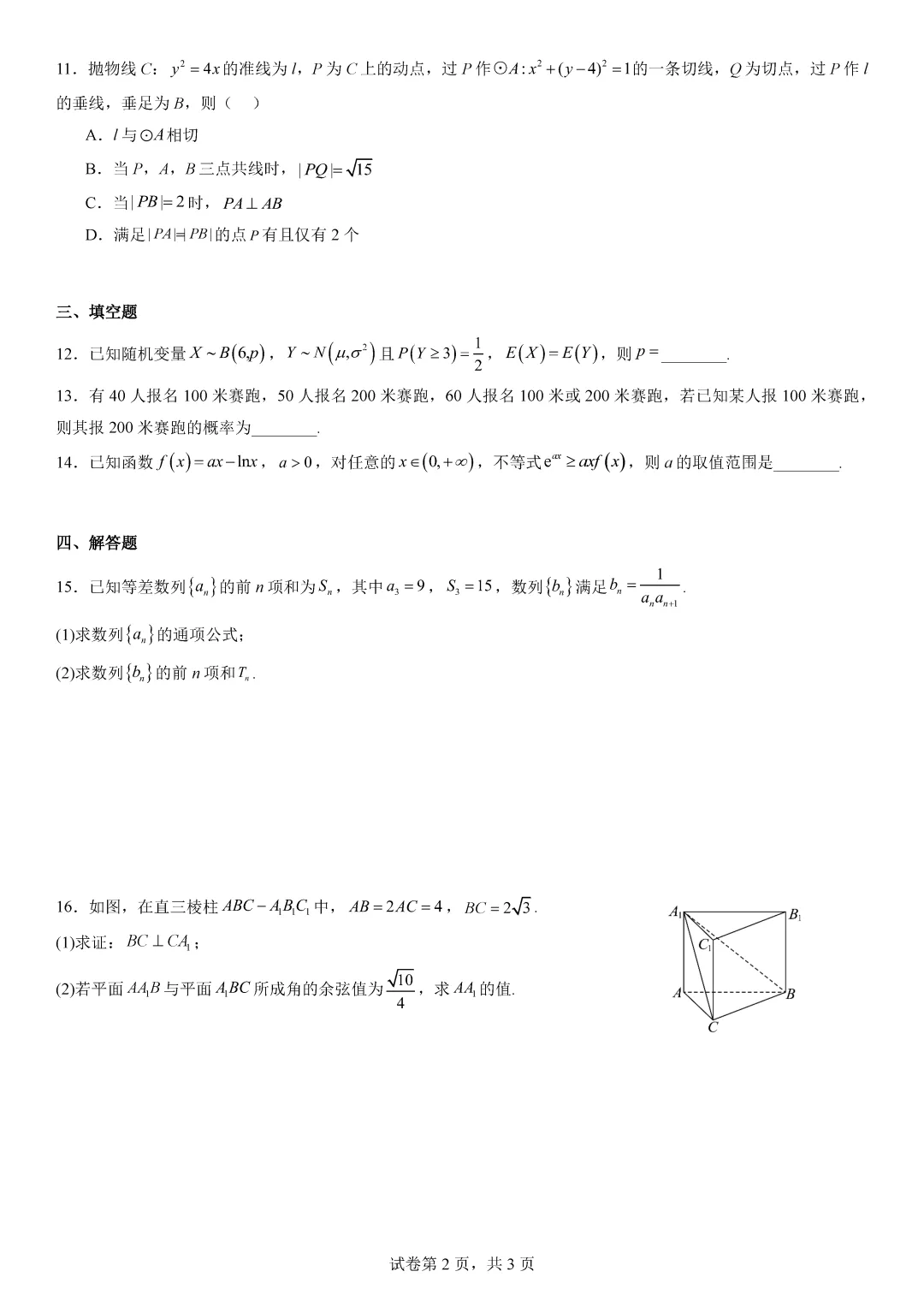 【112】四川成都市2026届高三二诊数学试卷
